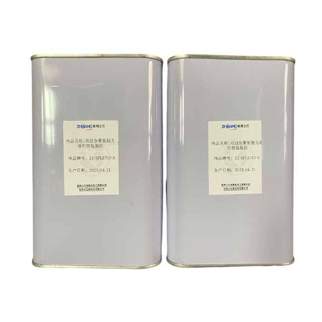 ZJ-SFLA703/SFLA603是一款無溶劑型雙組分聚氨酯覆膜膠,具有粘度低、復合速度快,熟化后外觀良好、剝離力高等優點。主要應用于PE//NY//PE共擠膜材、PVC//CPP等膜材的覆膜。